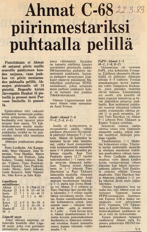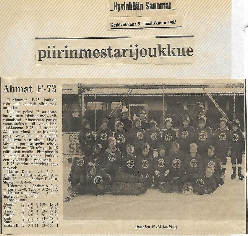 F-73 voitti piirinmestaruuden. Hyvinkään Sanomat uutisoi.