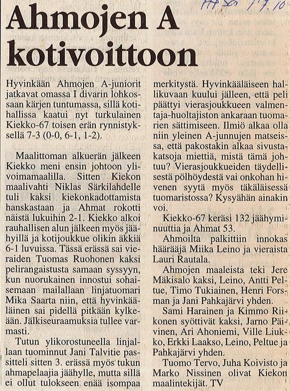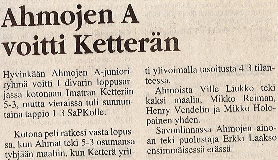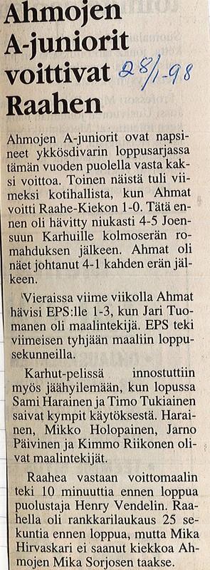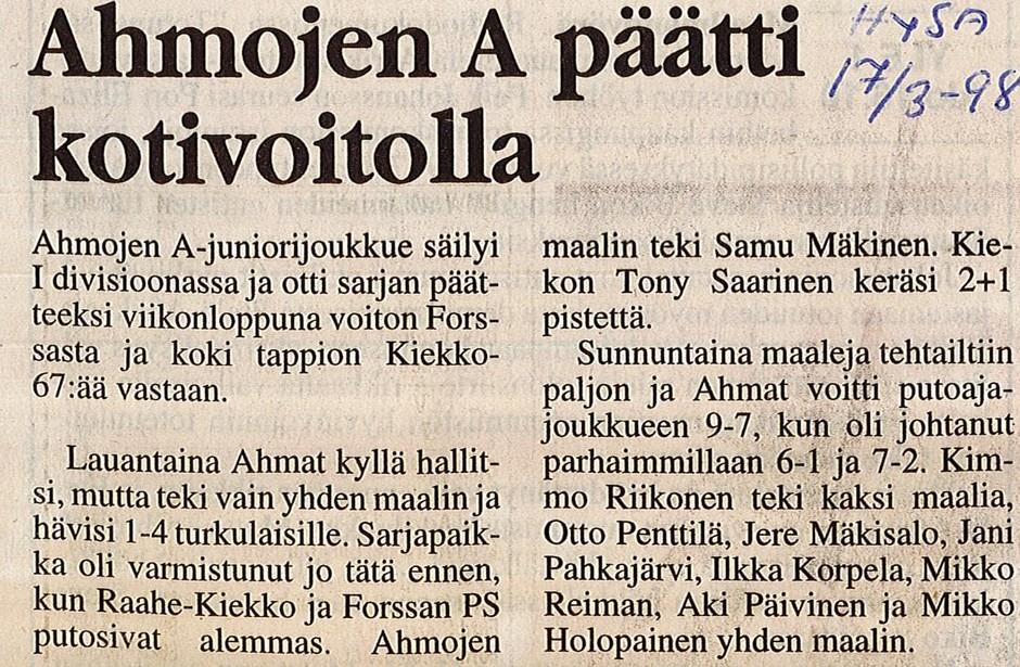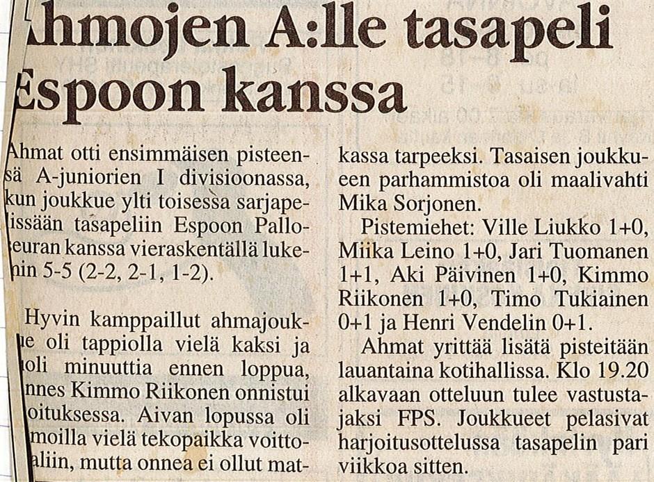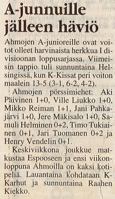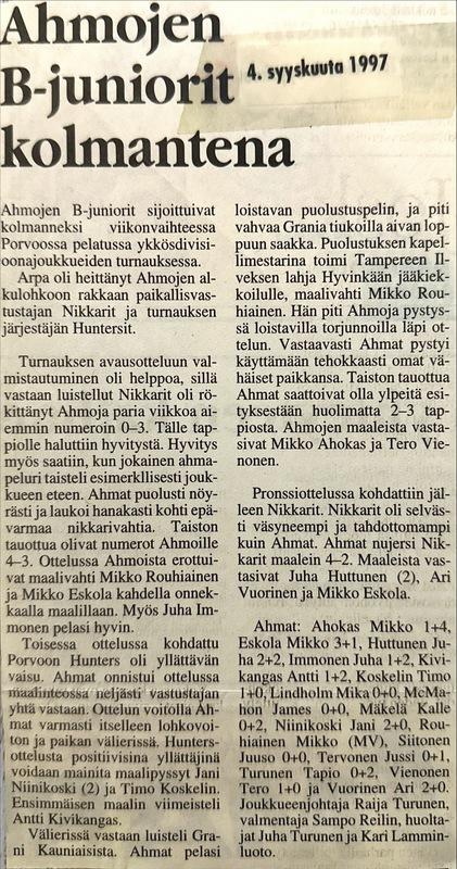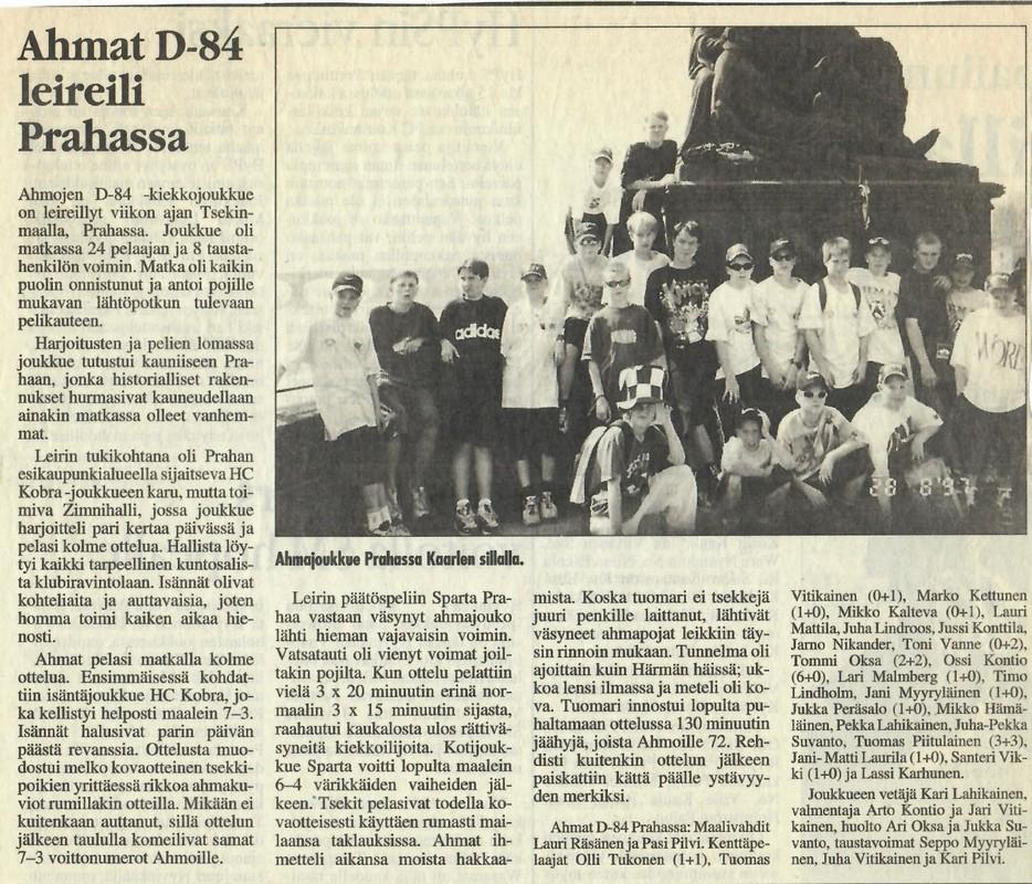 D-84 kävi leirillä Prahassa elokuussa 1997. Kirjoitus on joukkueen kausijulkaisusta, sivu 1.