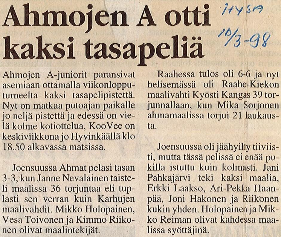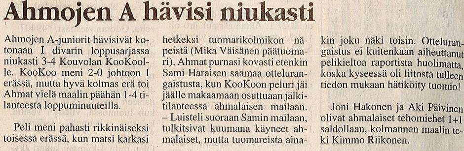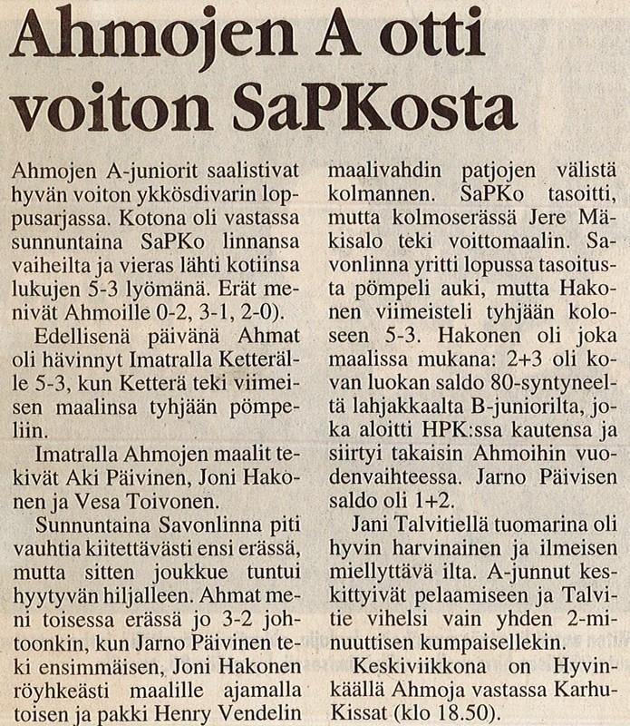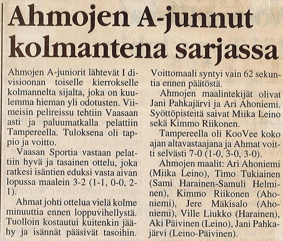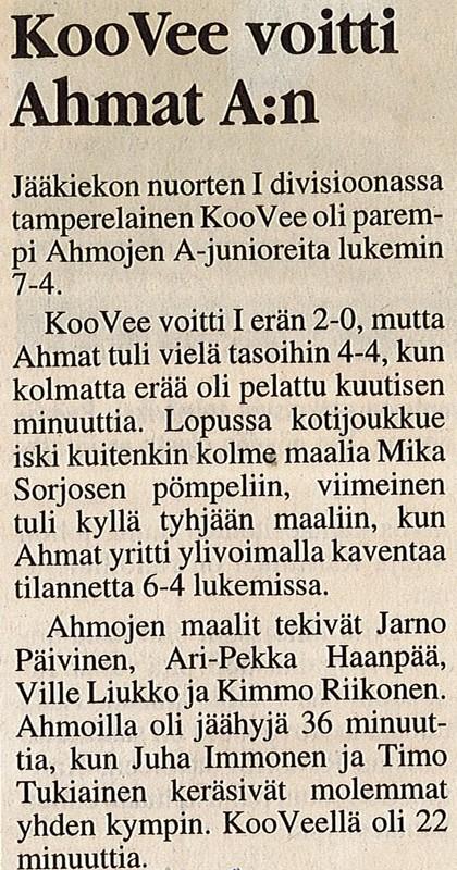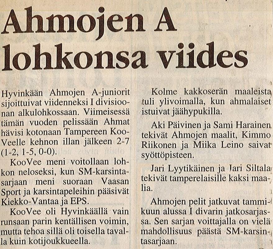 C-83 Team matkusti Kanadaan vuodenvaihteessa 1997-1998. Hyvinkään Sanomat uutisoi 20.12.1997.