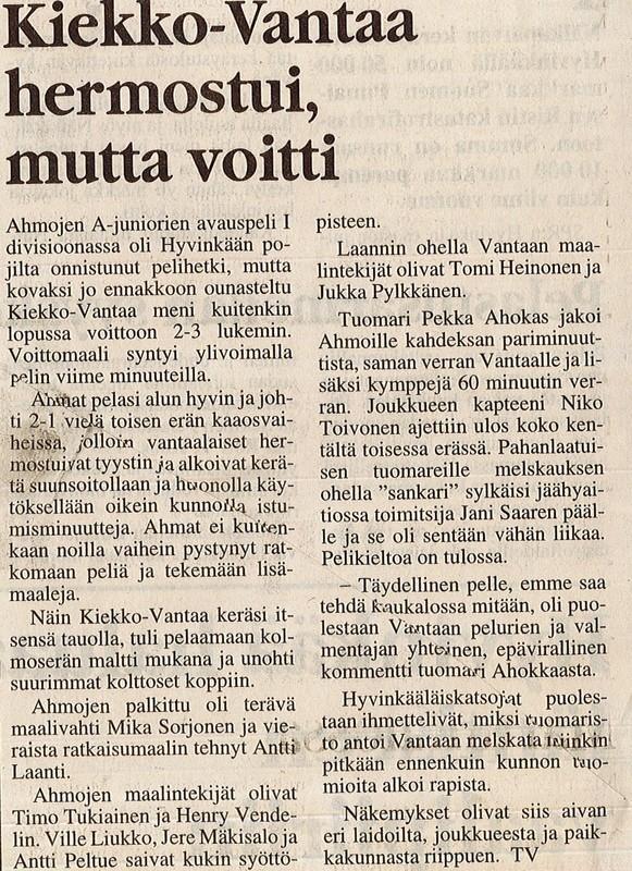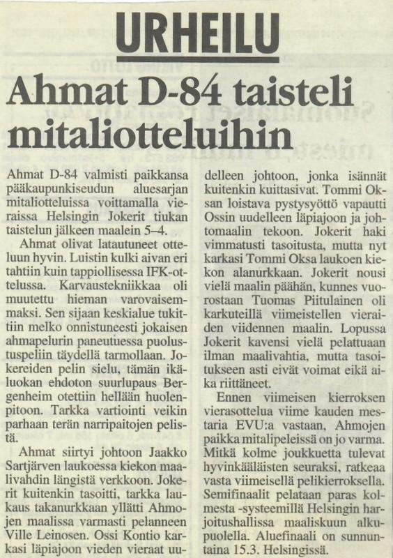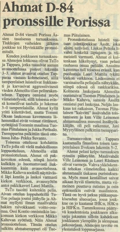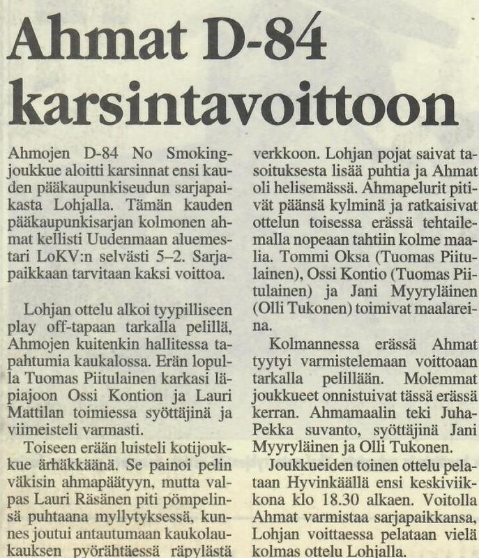 D-84 kävi leirillä Prahassa elokuussa 1997. Kirjoitus on joukkueen kausijulkaisusta, sivu 2.
