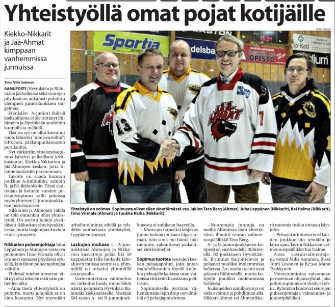 Eilen perjantaina 30.1.2015 Kiekko-Nikkarit ja Jää-Ahmat allekirjoittivat seurojen välisen seurayhteistyösopimuksen.